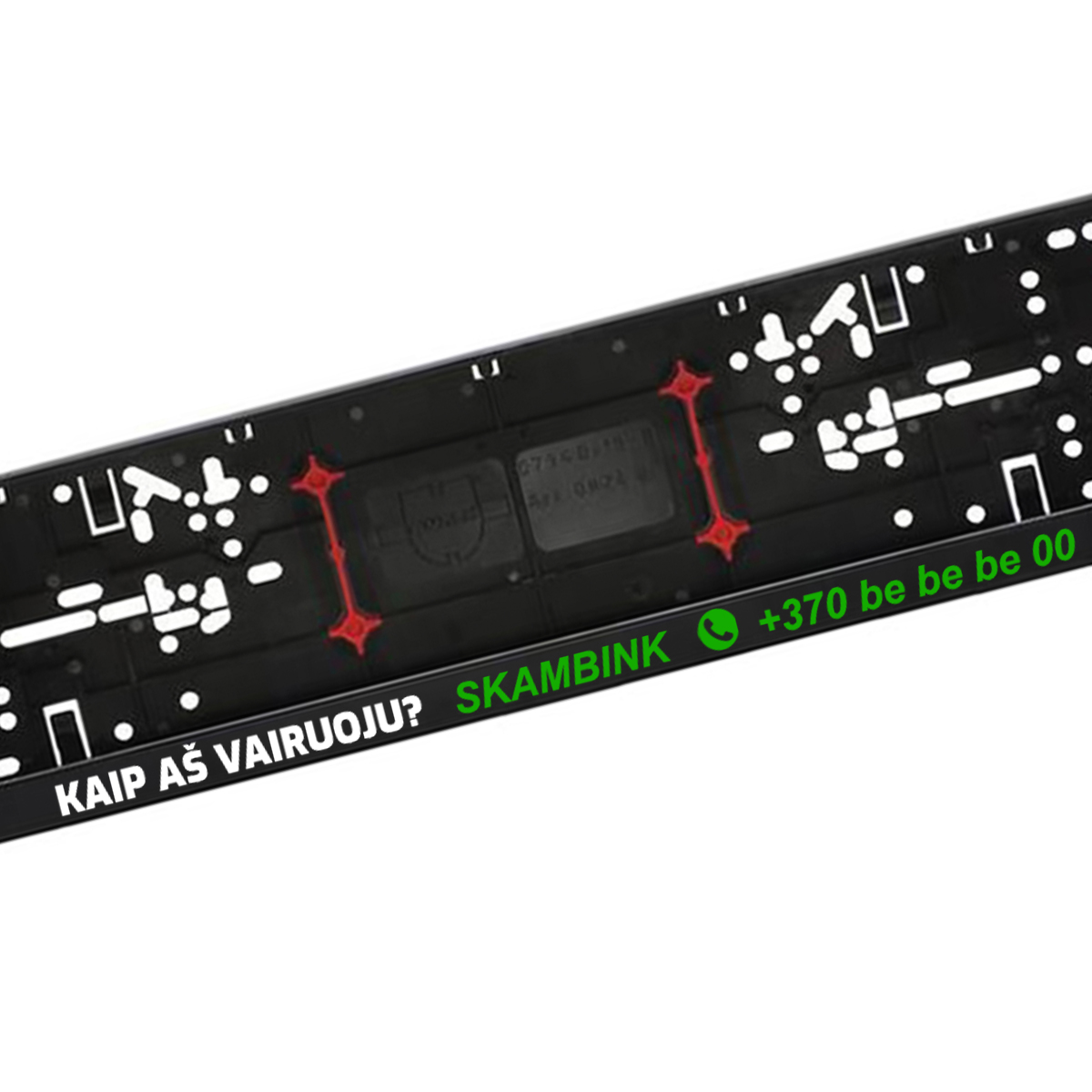 - Šie valstybinių numerių rėmeliai yra su keturiais guminiais rėmelio intarpais, kurie sumažina vibraciją ir triukšmą iki minimumo bei apsaugo automobilio dažus.