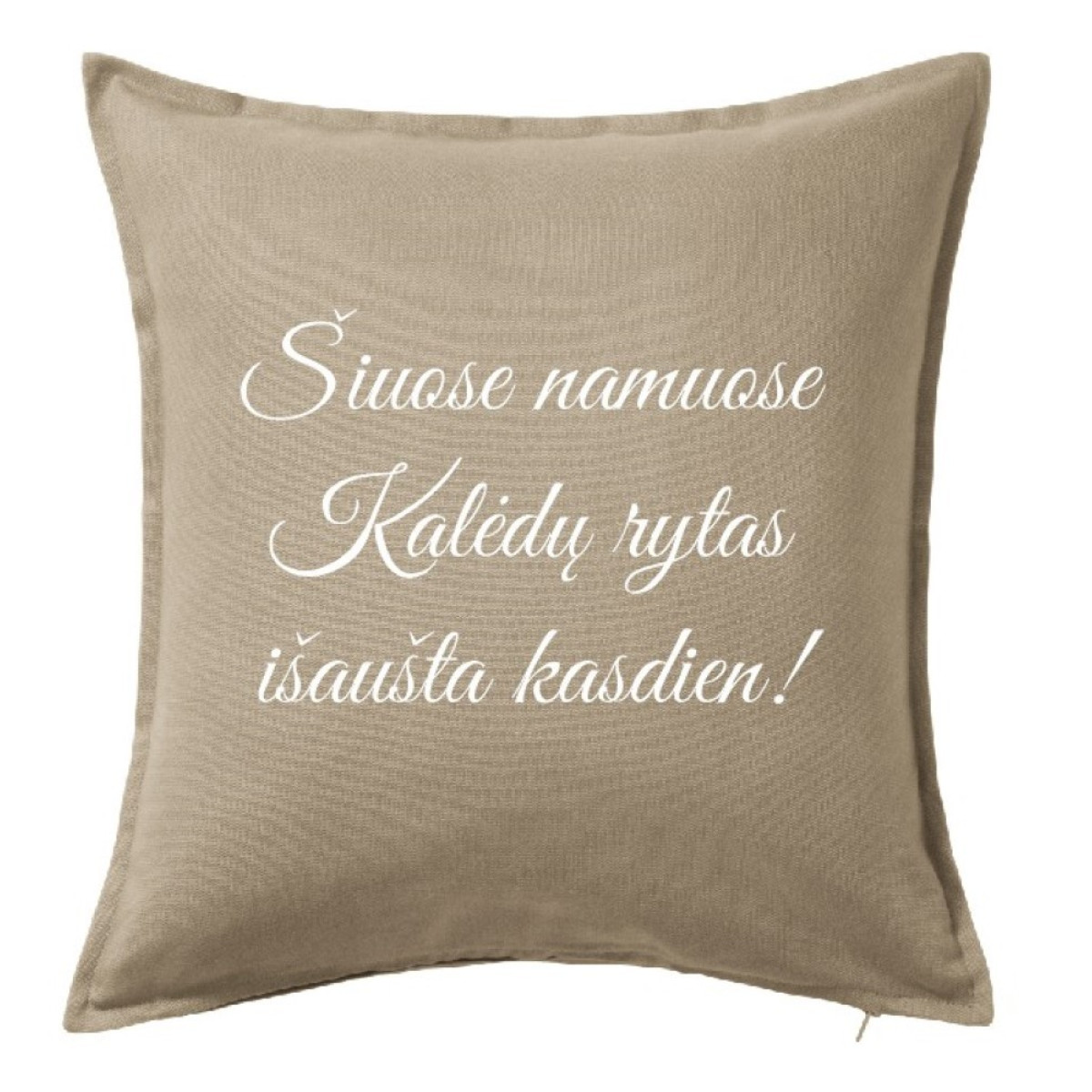 Dekoratyvinė pagalvėlė "Šiuose namuose Kalėdų rytas išaušta kasdien"