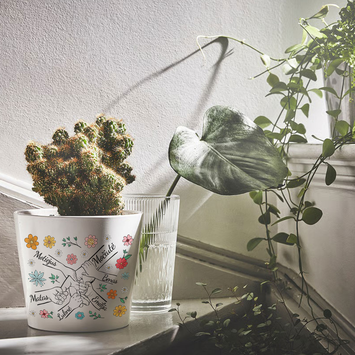 Elegantiškas vazonas "Močiutė ir anūkai" su anūkų vardais