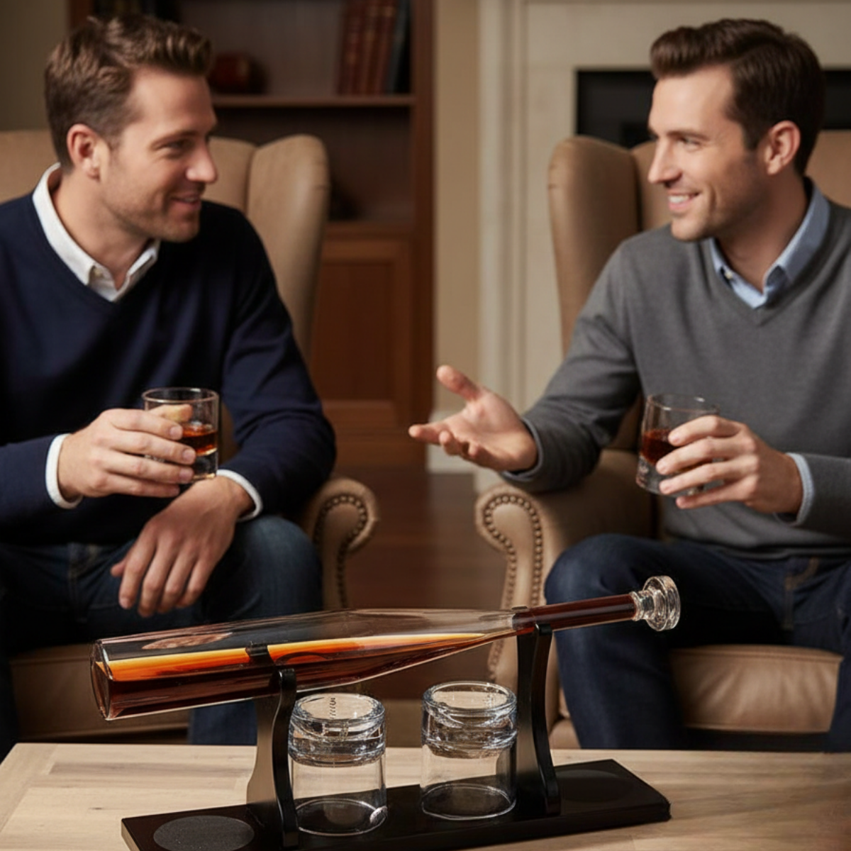 Išskirtinės formos grafino rinkinys kiekvieną stalą padarys unikaliu ir tikrai paliks didžiulį įspūdį Jūsų svečiams ar vakarėlio dalyviams. Tai ne tik baro aksesuaras, bet ir stilingas akcentas, kuris iš karto patraukia dėmesį. Šis rinkinys – puiki dovana solidžiam džentelmenui, sporto aistruoliui, beisbolo gerbėjui ar žaidėjui, kuris vertina kokybę, stilių ir prabangą.