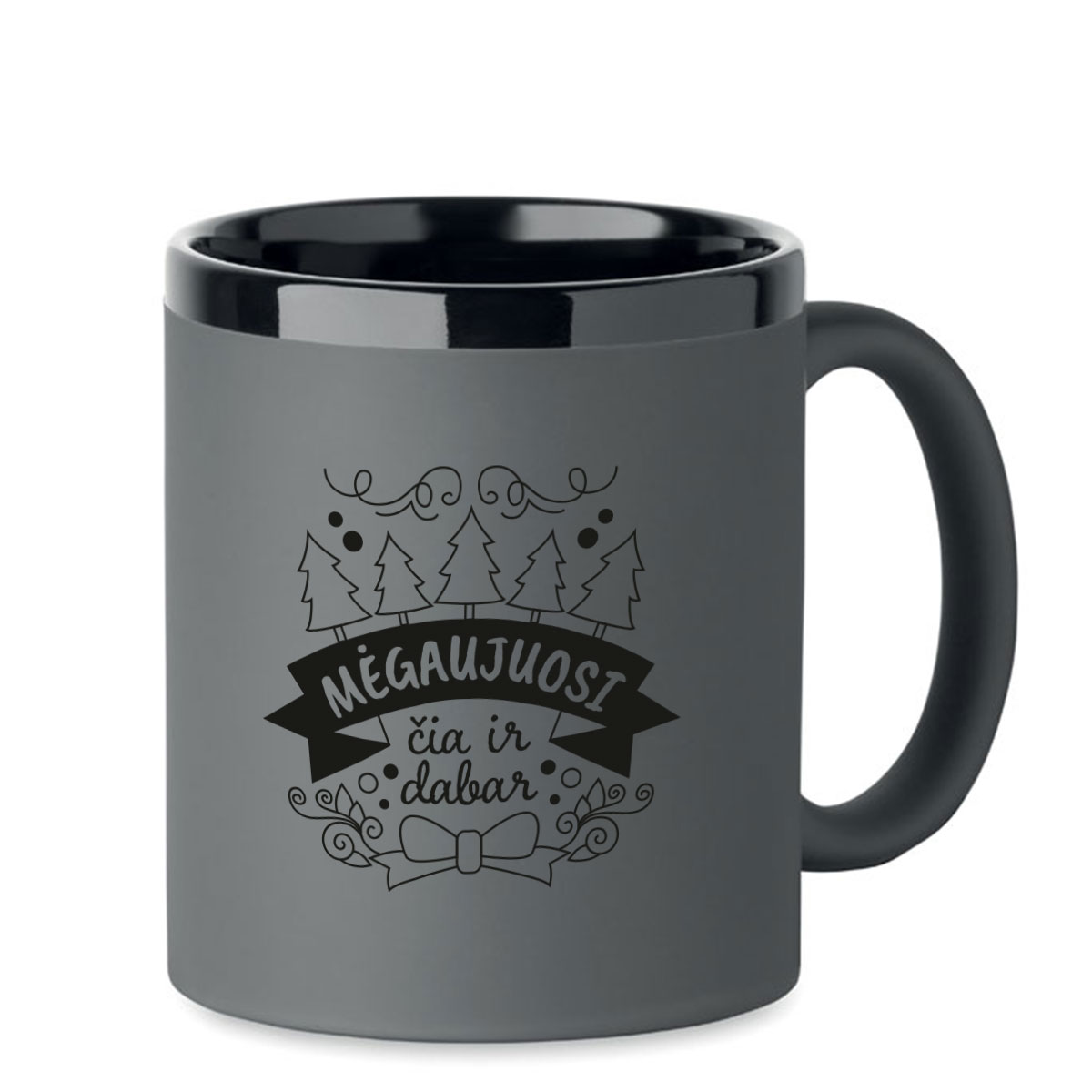 Graviruotas puodelis "Mėgaujuosi čia ir dabar"