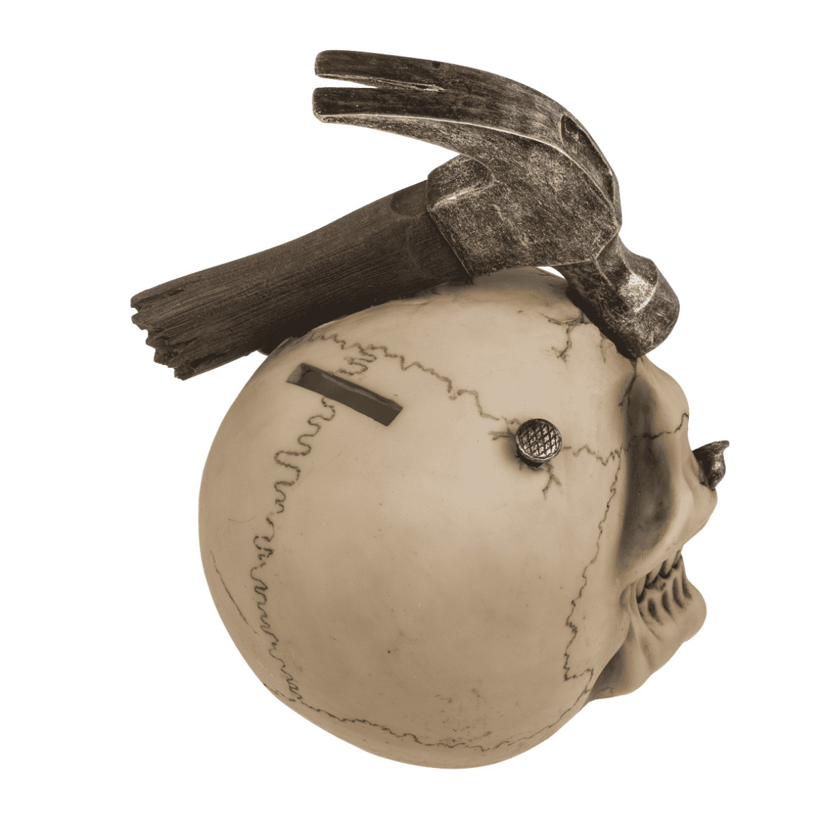 Kaukolės formos taupyklė su plaktuku ir vinimis
