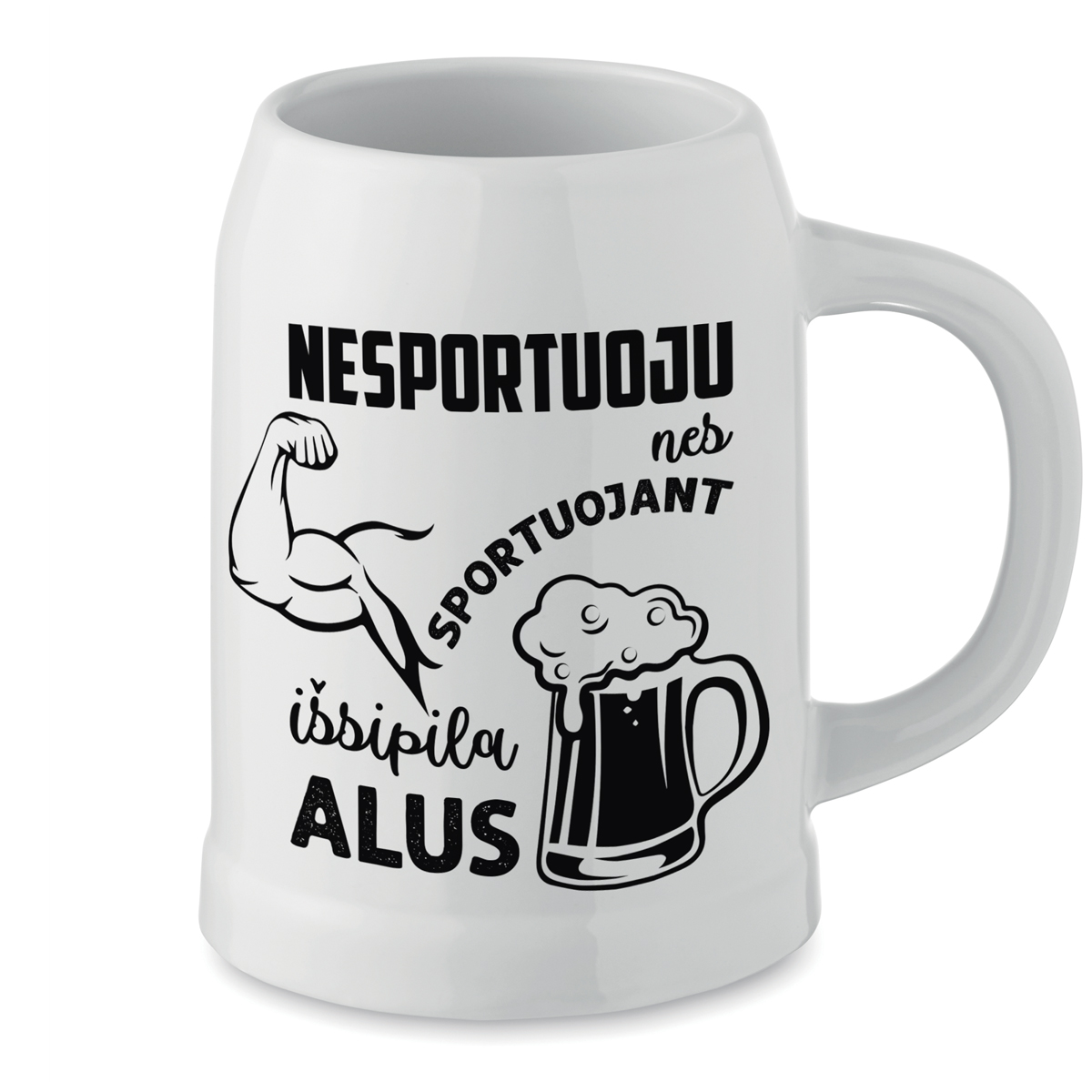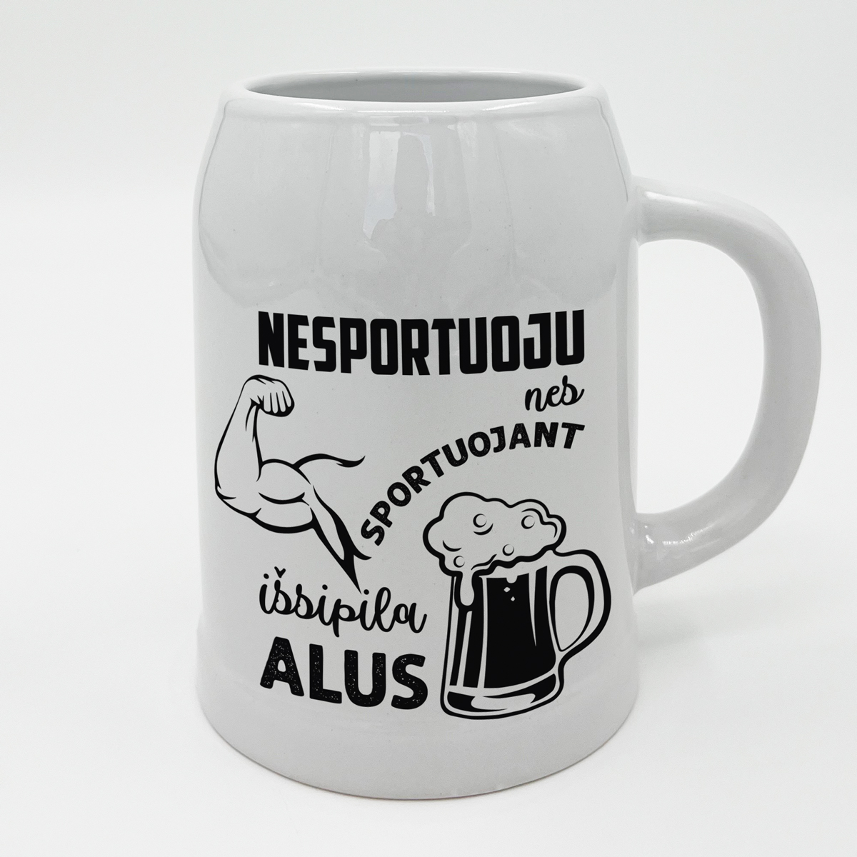 Ieškote ypatingos dovanos, kuri pralinksmins artimą žmogų? Keramikinis bokalas su užrašu "NESPORTUOJU, nes sportuojant išsipila ALUS" - puikus pasirinkimas!