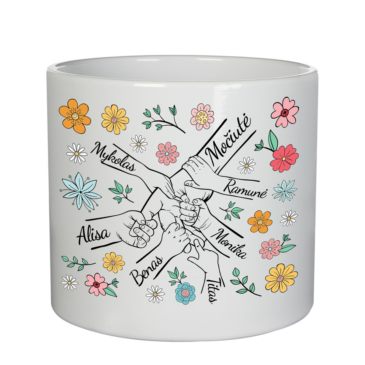 Keramikinis vazonas "Močiutė ir anūkai" su anūkų vardais