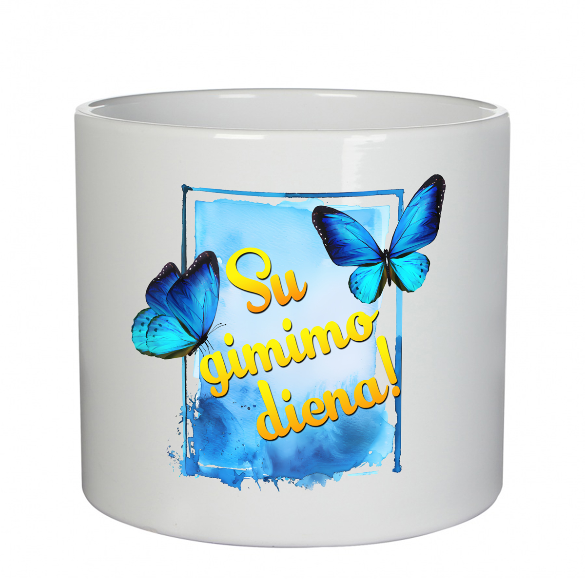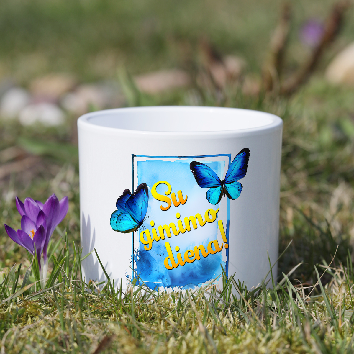 Itin žavus, keraminis, apvalus vazonas su užrašu - "Su gimimo diena!".