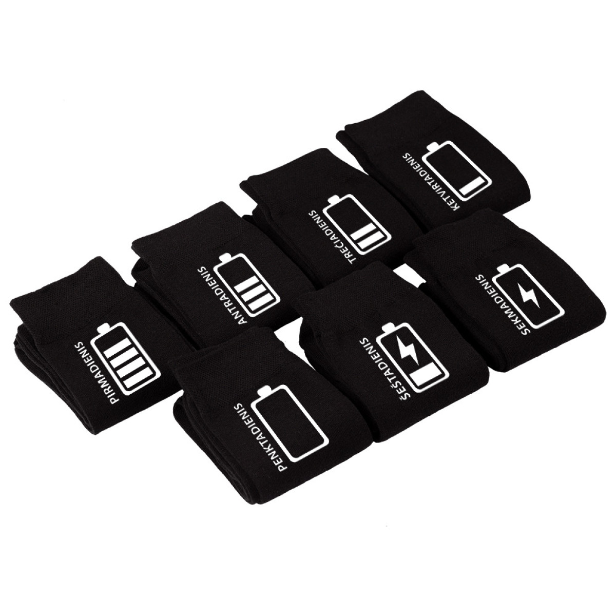 - 7 poros kojinių su spauda ant kiekvienos kojinės (7 skirtingi maketai x 2 vnt.).