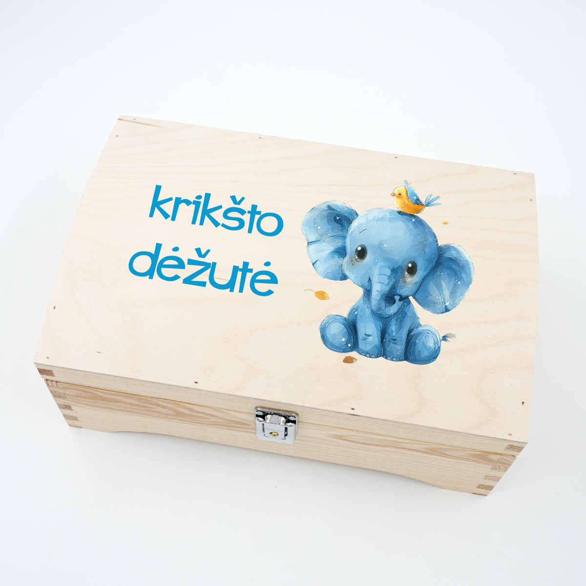 Medinė skrynelė "Krikšto dėžutė su drambliuku"