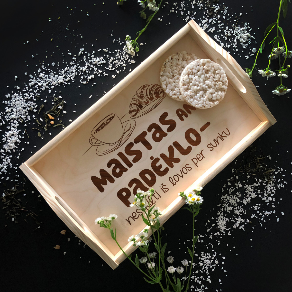 Medinis pusryčių padėklas "Maistas ant padėklo"