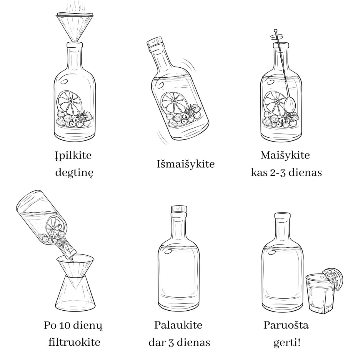 - Leiskite gėrimui pastovėti dar 2–3 dienas.