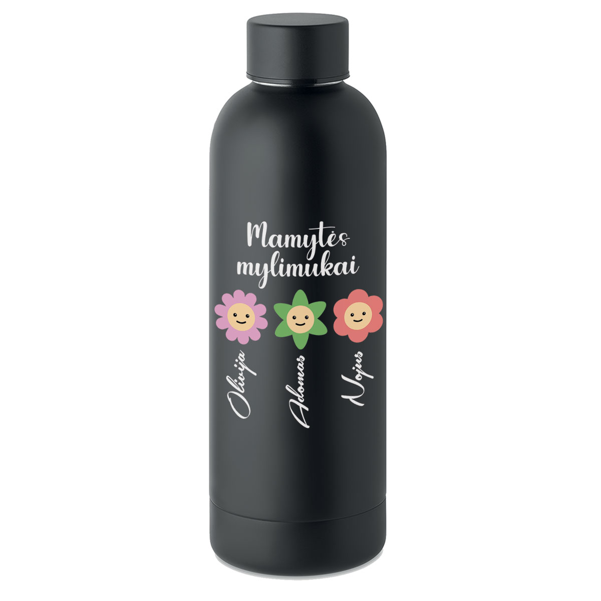 Metaline termo gertuvė "Mamytės mylimukai" su Jūsų pasirinktais vardais – prasminga ir praktiška dovana, kuri kasdien primins apie pačius brangiausius.