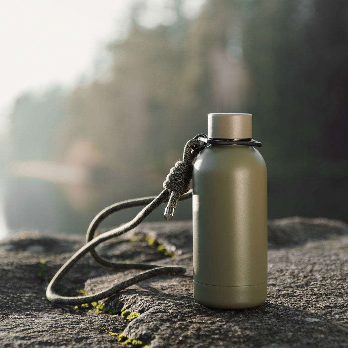Pagaminta iš aukštos kokybės perdirbto nerūdijančio plieno (70 % perdirbto plieno, 30 % nerūdijančio plieno), ši gertuvė yra ne tik ilgaamžė, bet ir draugiška aplinkai.