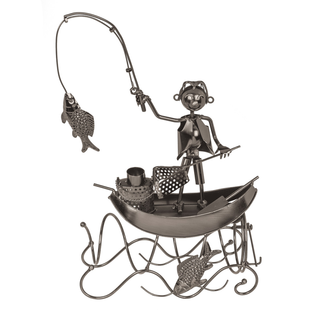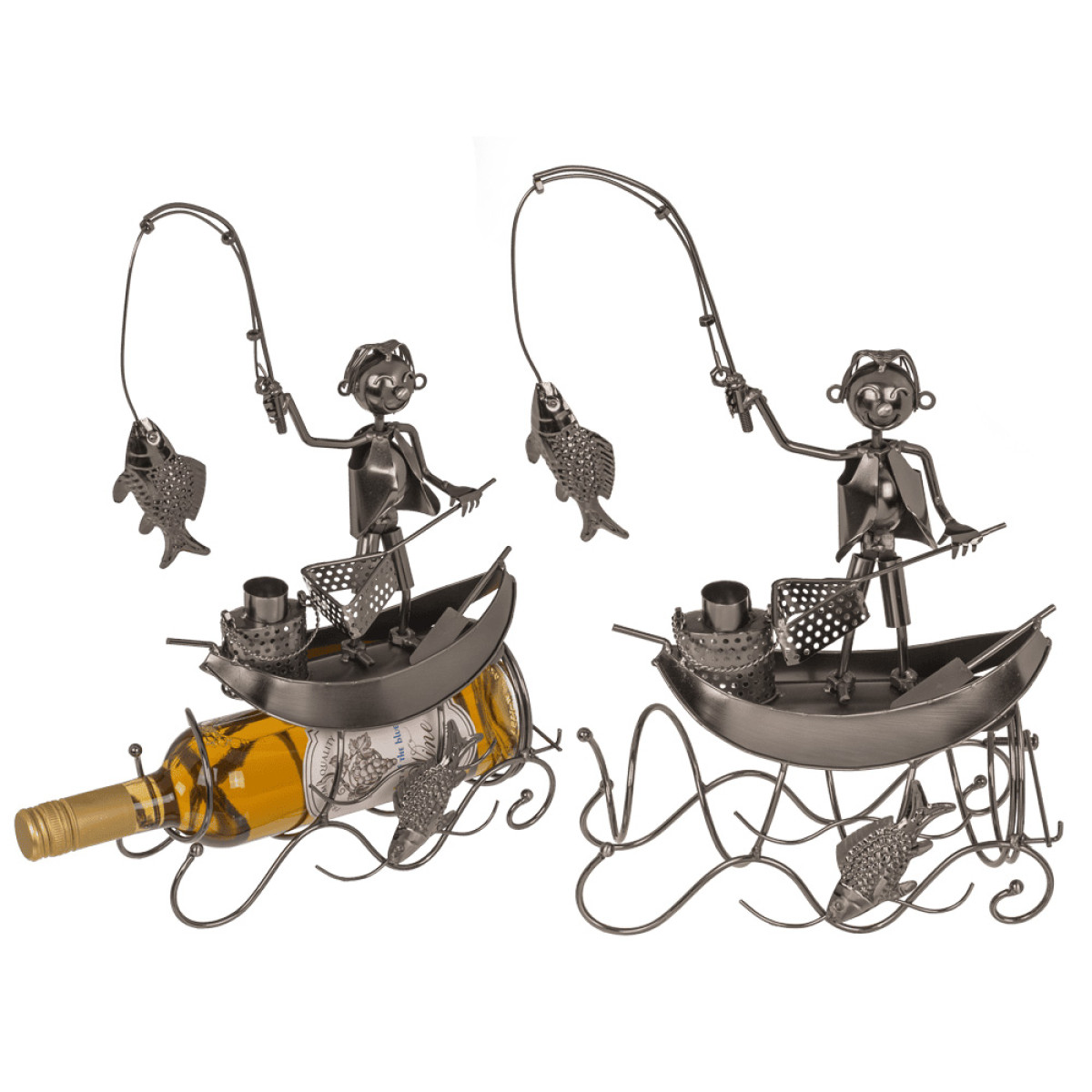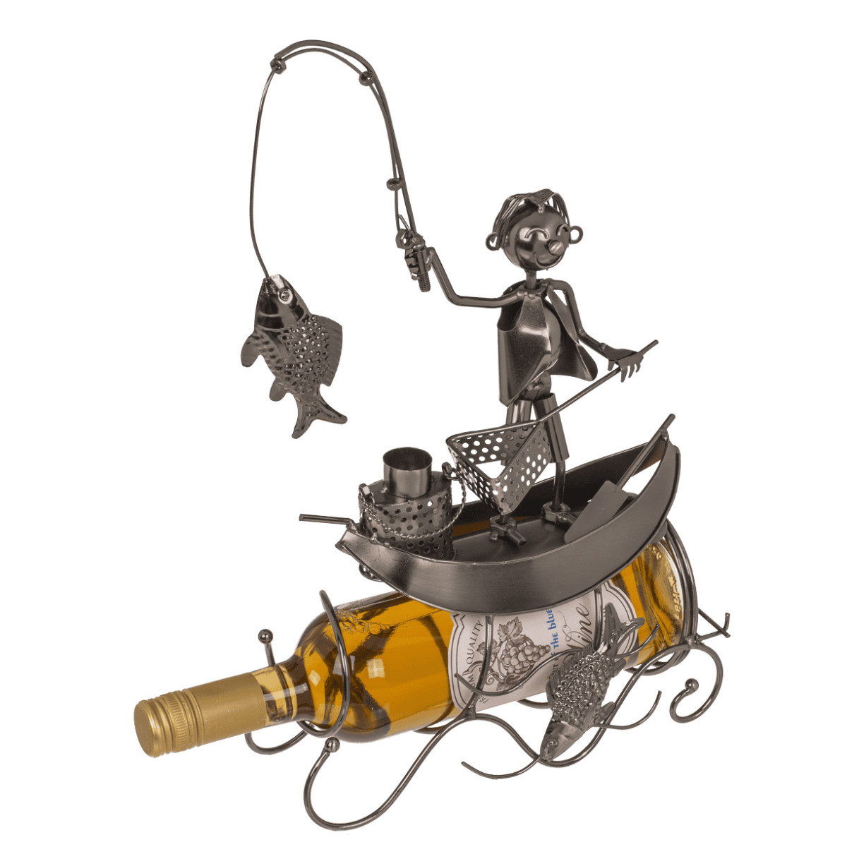 Metalinis butelio laikiklis "Žvejys valtyje"