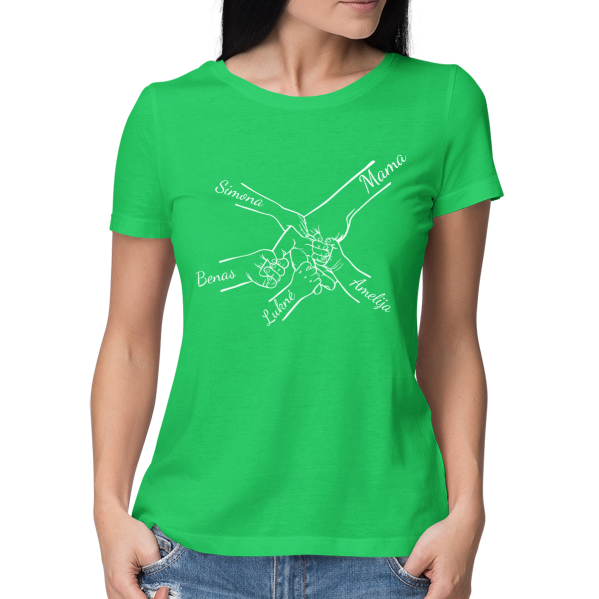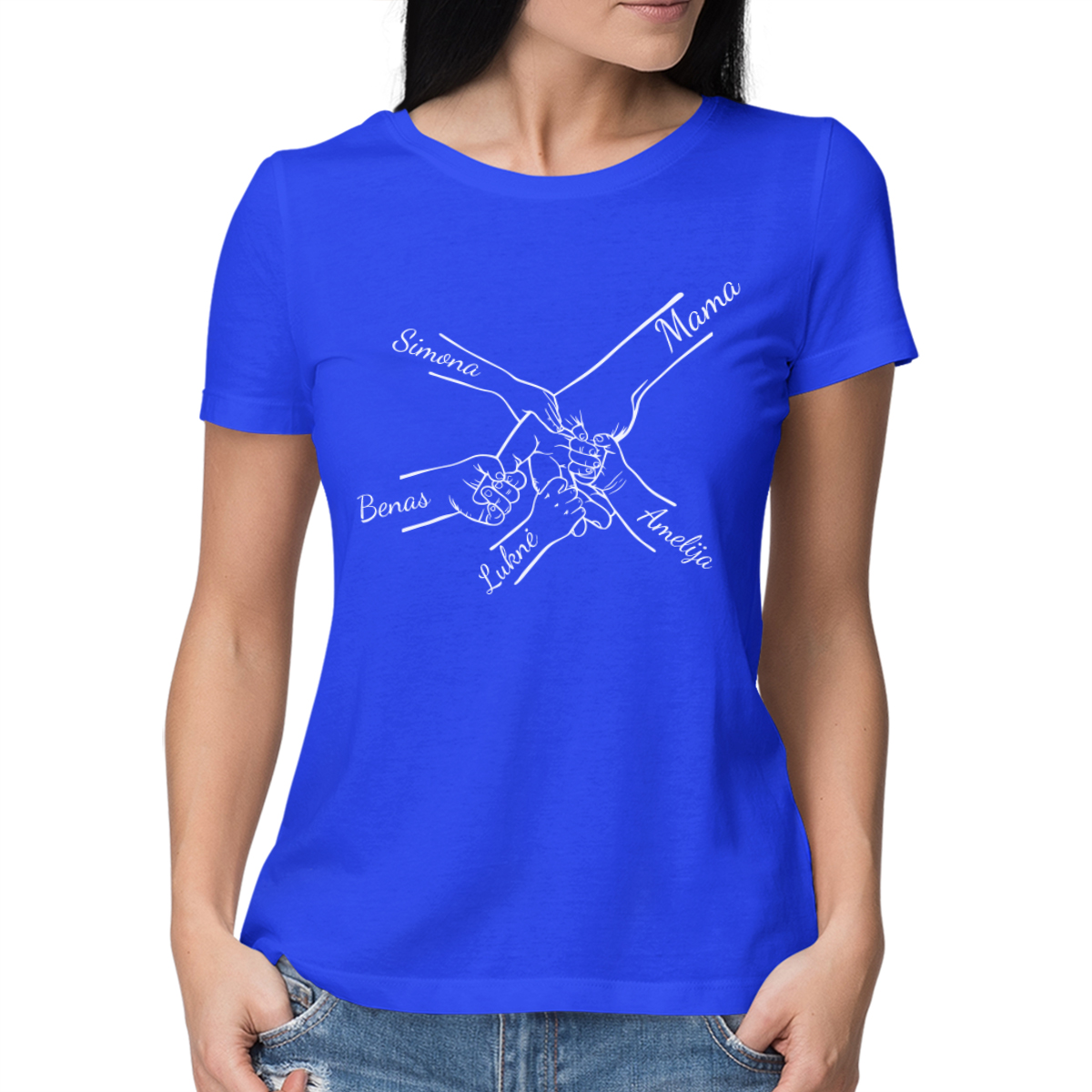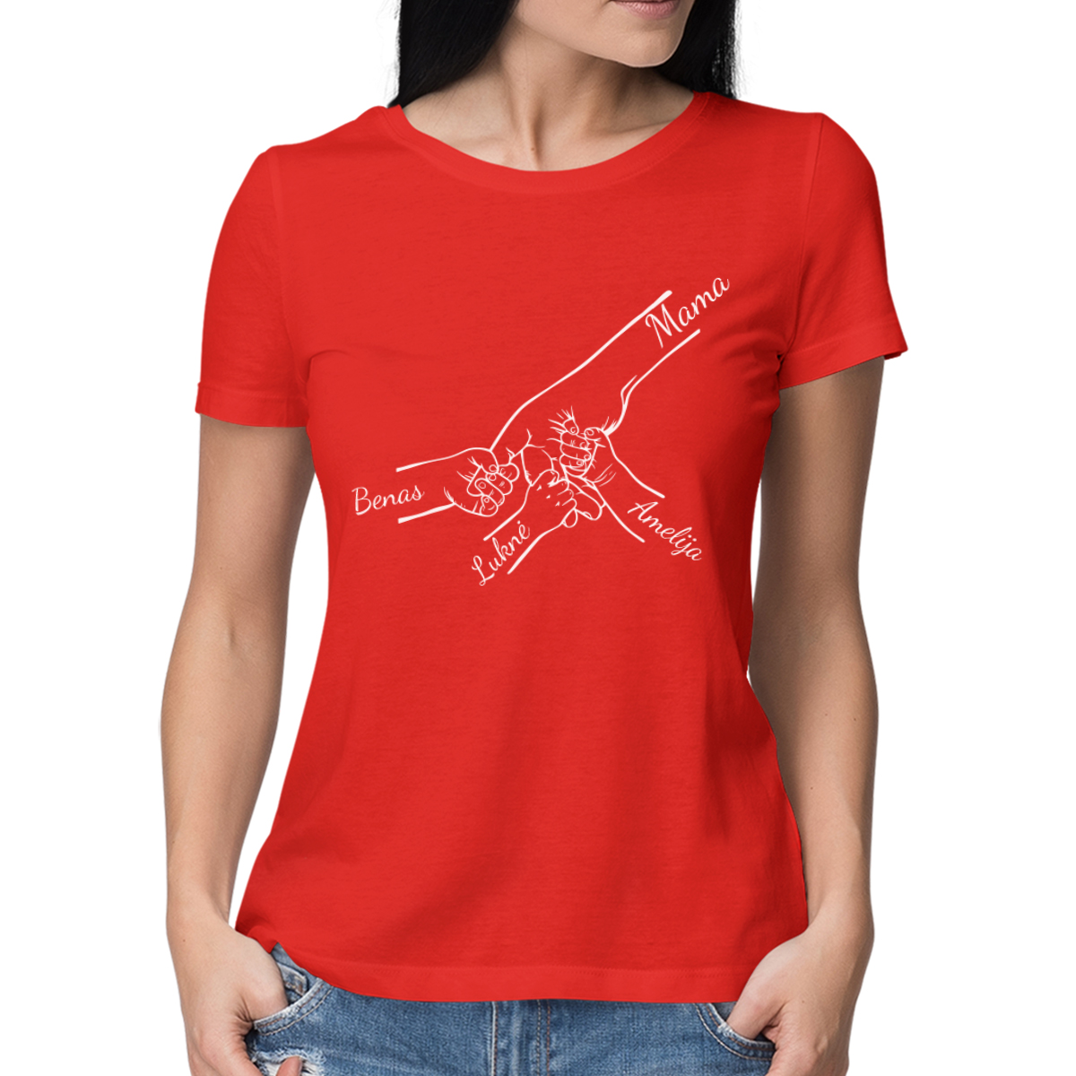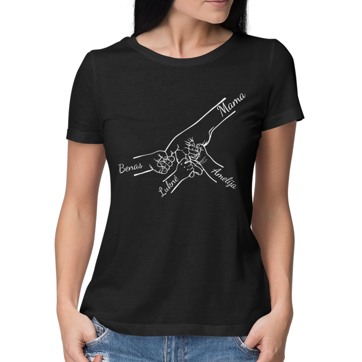 Moteriški marškinėliai "Mama ir vaikai" su pasirinktais vaikų vardais