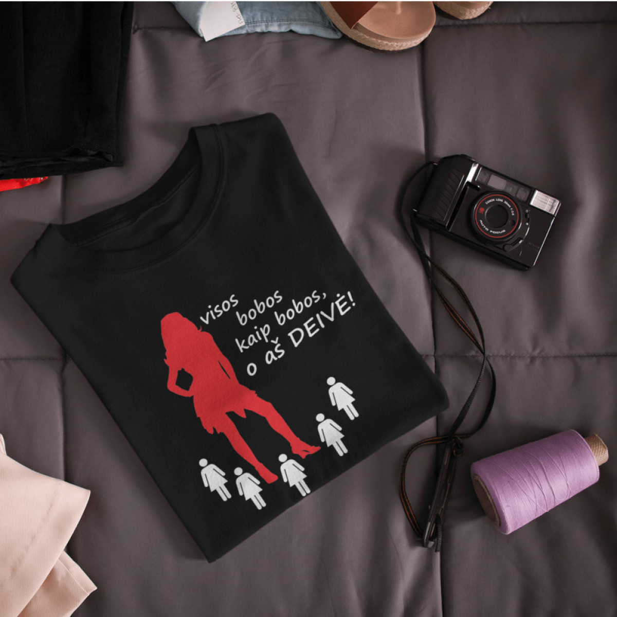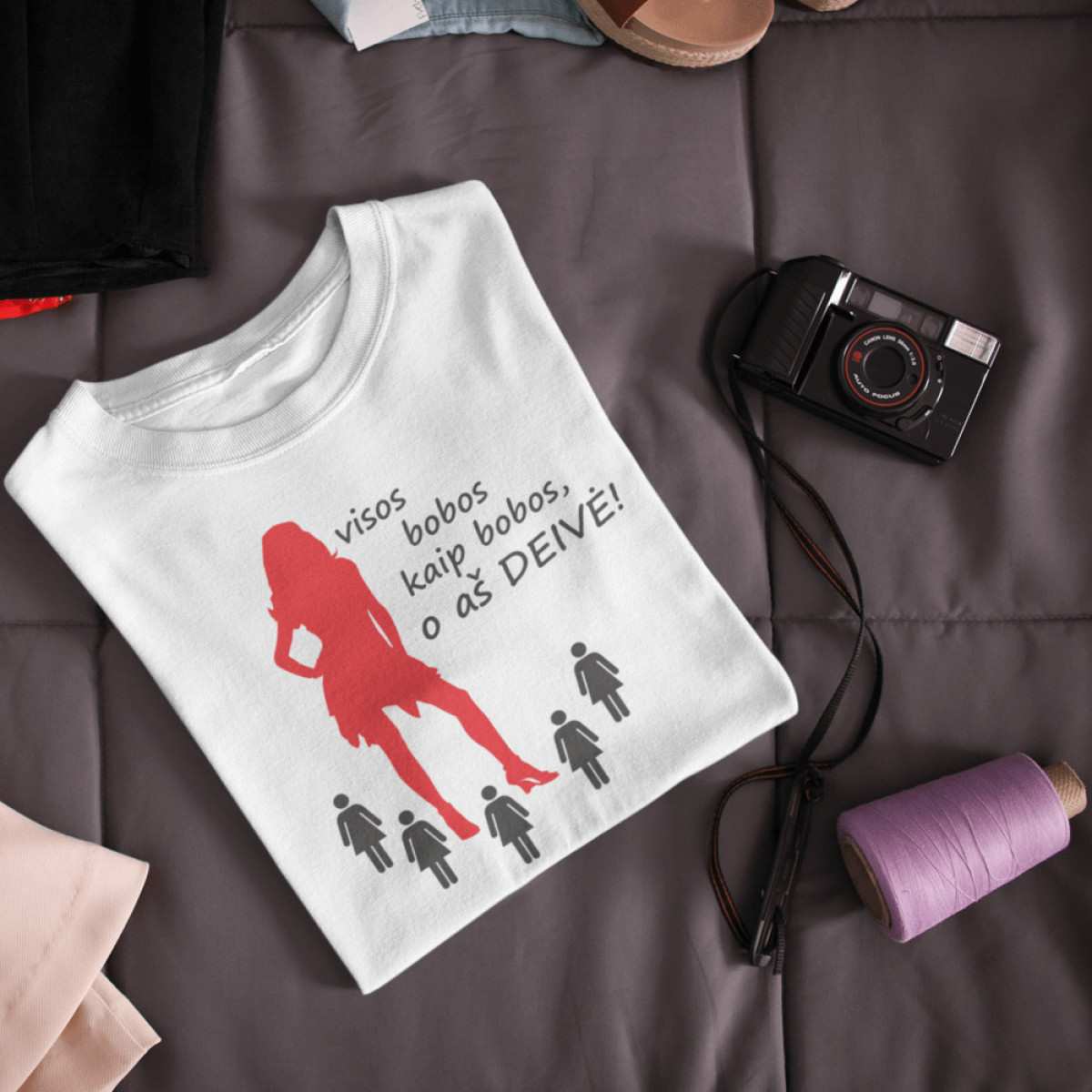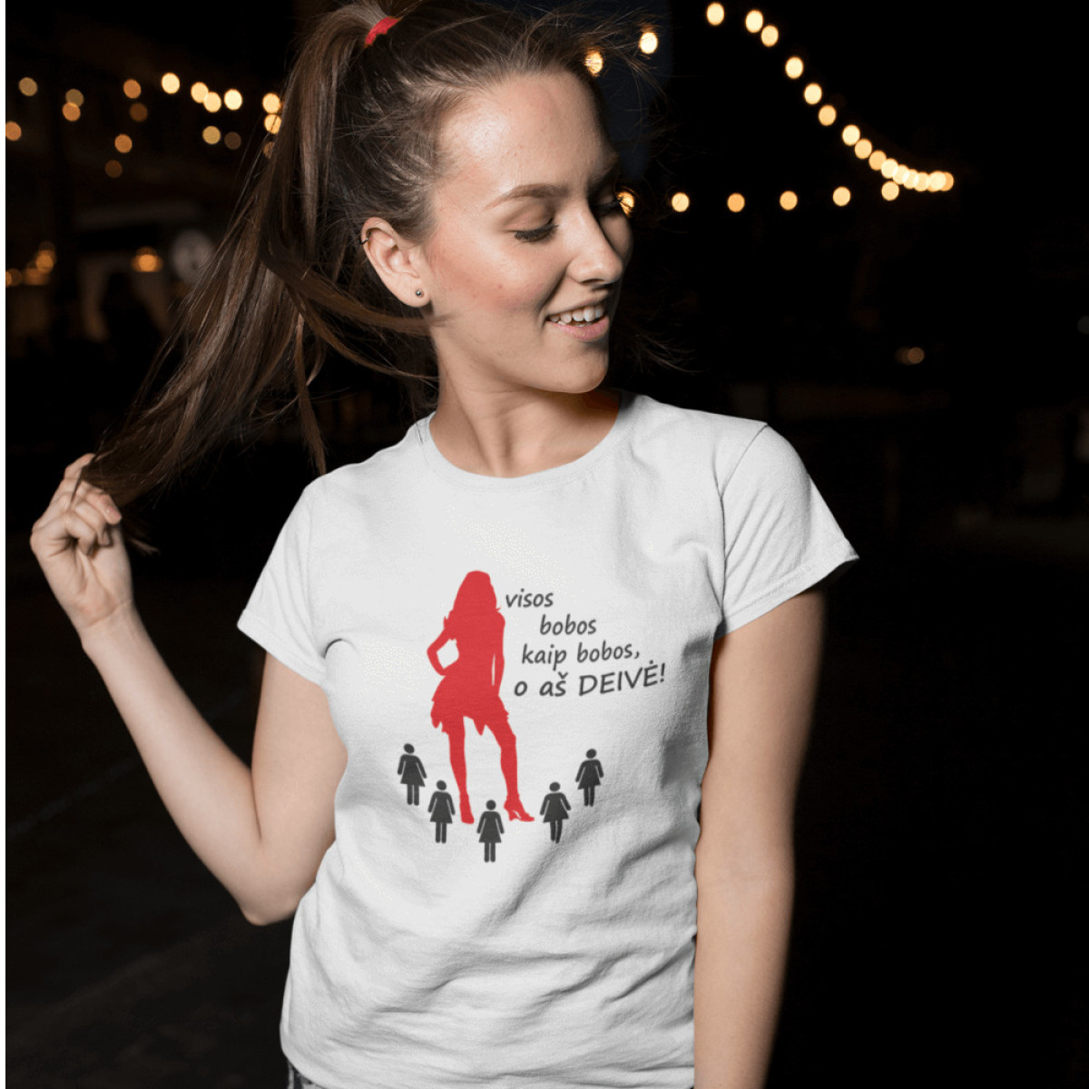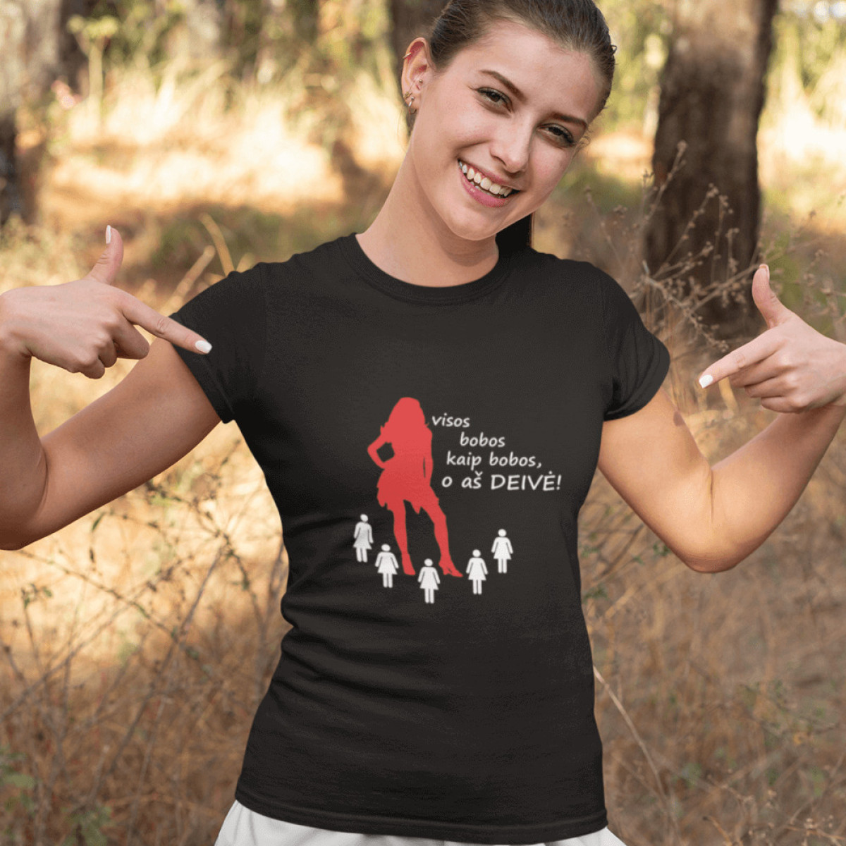 Moteriški marškinėliai "Visos bobos kaip bobos, o aš DEIVĖ"