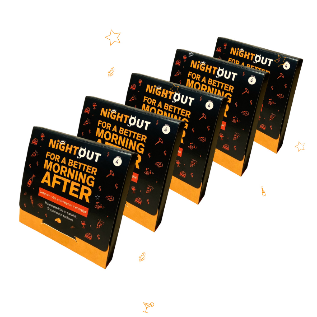 NIGHTOUT maisto papildas nuo pagirių, 5 pakuotės