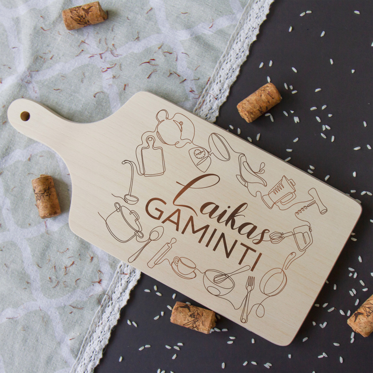 Šią medinę graviruotą pjaustymo lentelę galima naudoti ir pagal paskirtį, ir kaip namų aksesuarą. Juk pjaustymo lentelė yra, bene, labiausiai reikalingas daiktas virtuvėje.