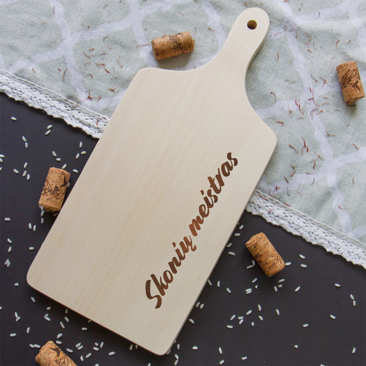 Šią medinę graviruotą pjaustymo lentelę galima naudoti ir pagal paskirtį, ir kaip namų aksesuarą.