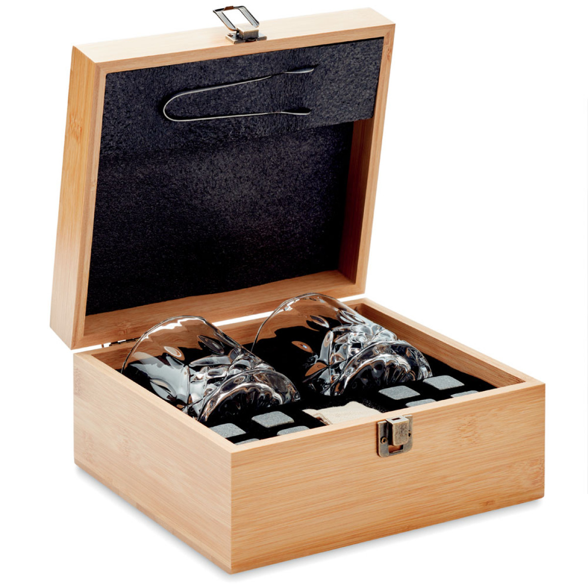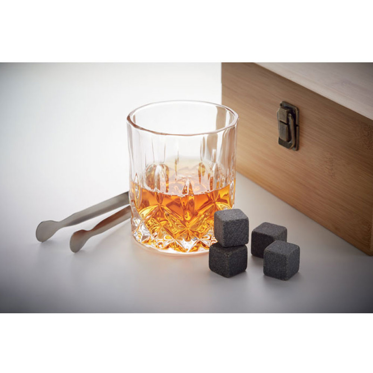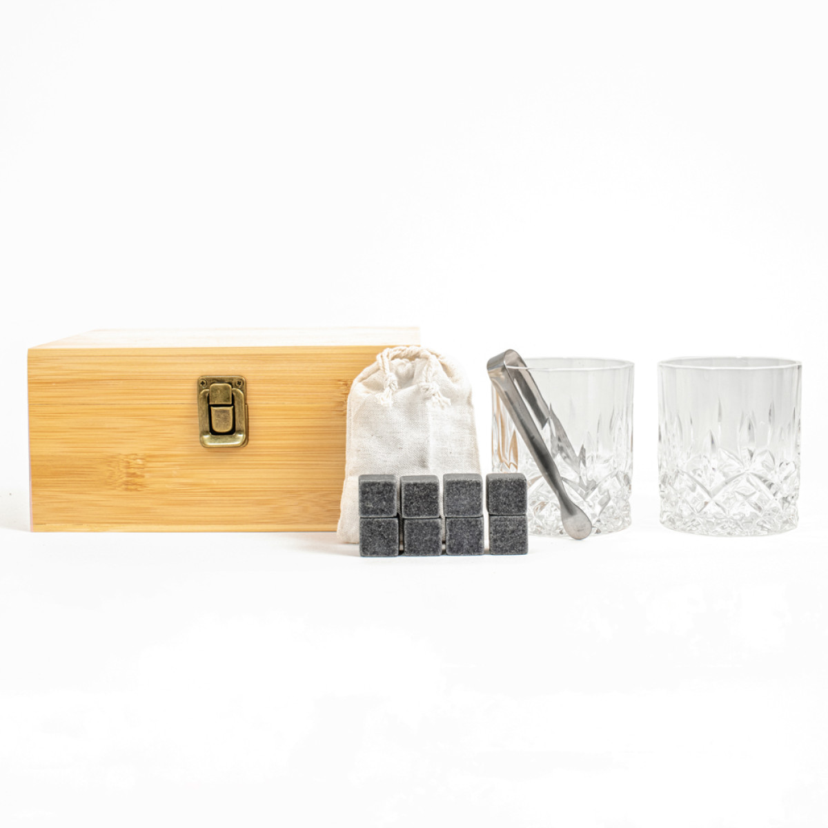 Prabangus viskio stiklinių rinkinys bambukinėje dėžutėje "BOSAS"