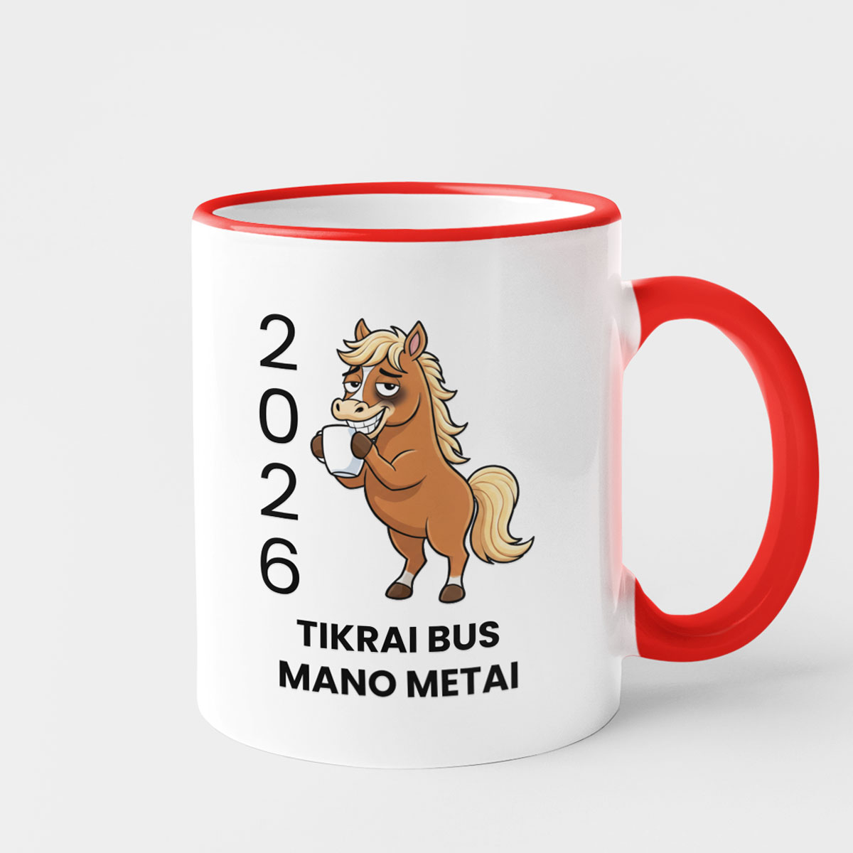 - Puodelis su spalvotu krašteliu – šis modelis išsiskiria stilingu dizainu: subtiliai spalvotu krašteliu ir ąsele, kurie suteikia puodeliui žaismingumo ir puikiai išryškina unikalų užrašą.
