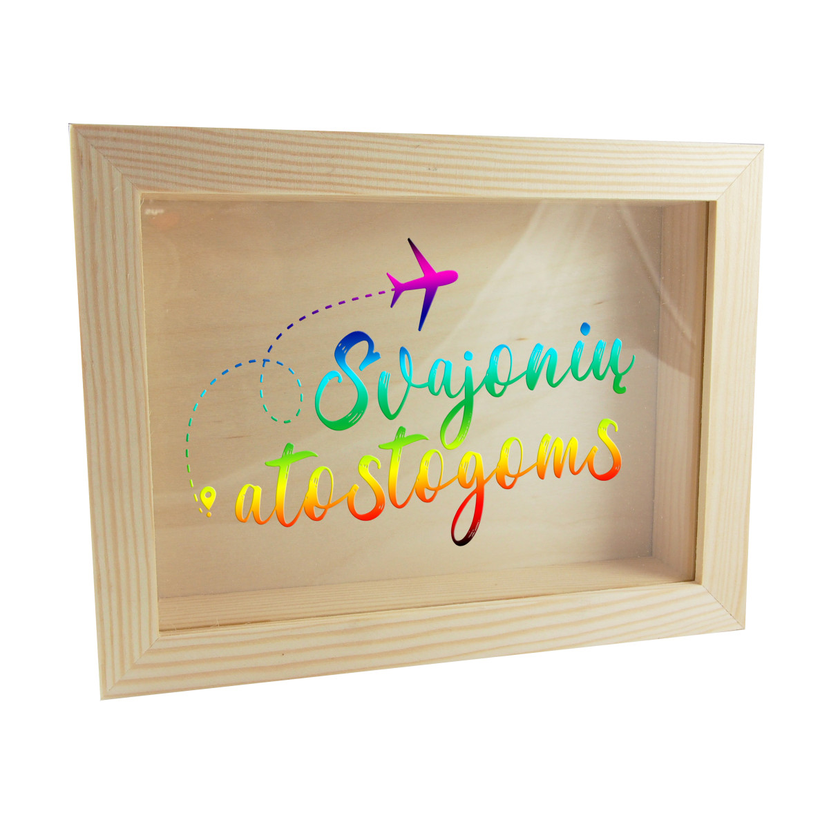 Išskirtinis rėmelis - taupyklė "Atostogoms" su iškiliu tekstu išorėje. Tai originali taupyklė ir puiki dovana!