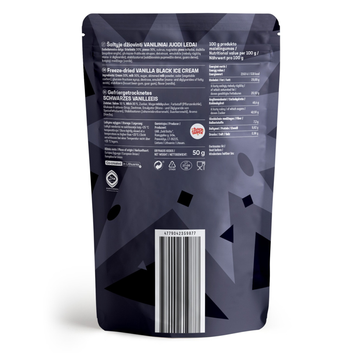 STAR CANDIES šaltyje džiovinti vaniliniai juodieji ledai, 50g