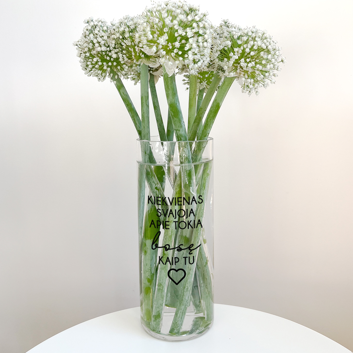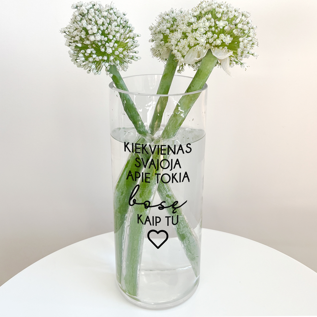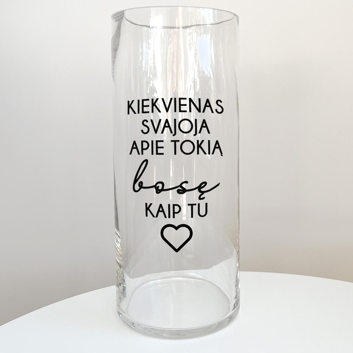 Tai daugiau nei interjero detalė - tai išskirtinis būdas parodyti pagarbą ir įvertinimą. Užrašas ant vazos suteikia jai prasmės: ji tampa ne tik stilingu akcentu, bet ir simboliu, primenančiu apie vadovės stiprybę bei gebėjimą įkvėpti komandą.