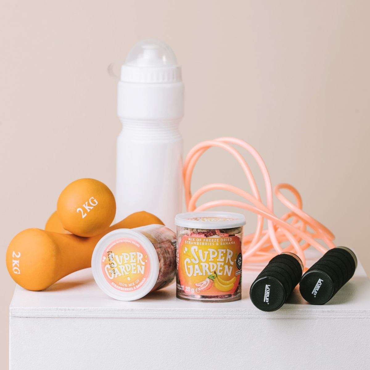 SUPER GARDEN šaltyje džiovintų braškių ir bananų mišinys, 29g