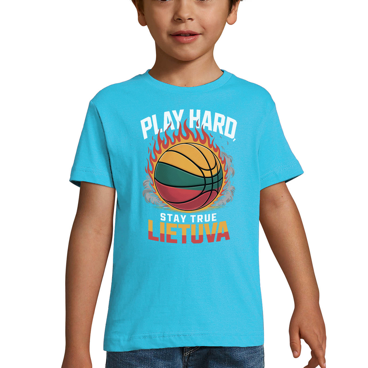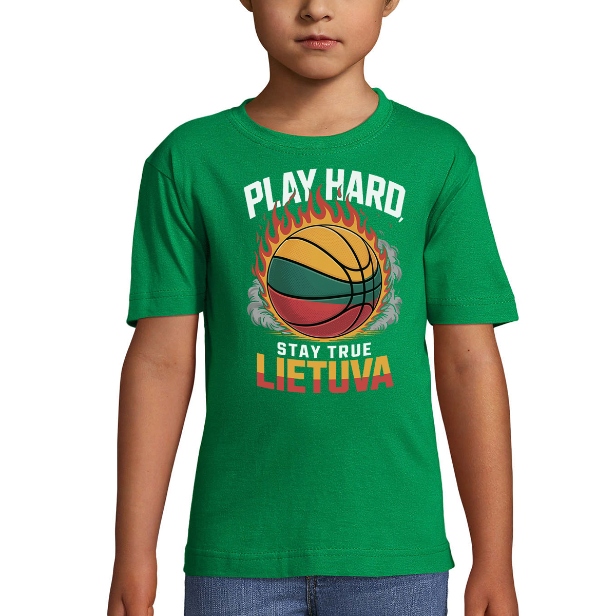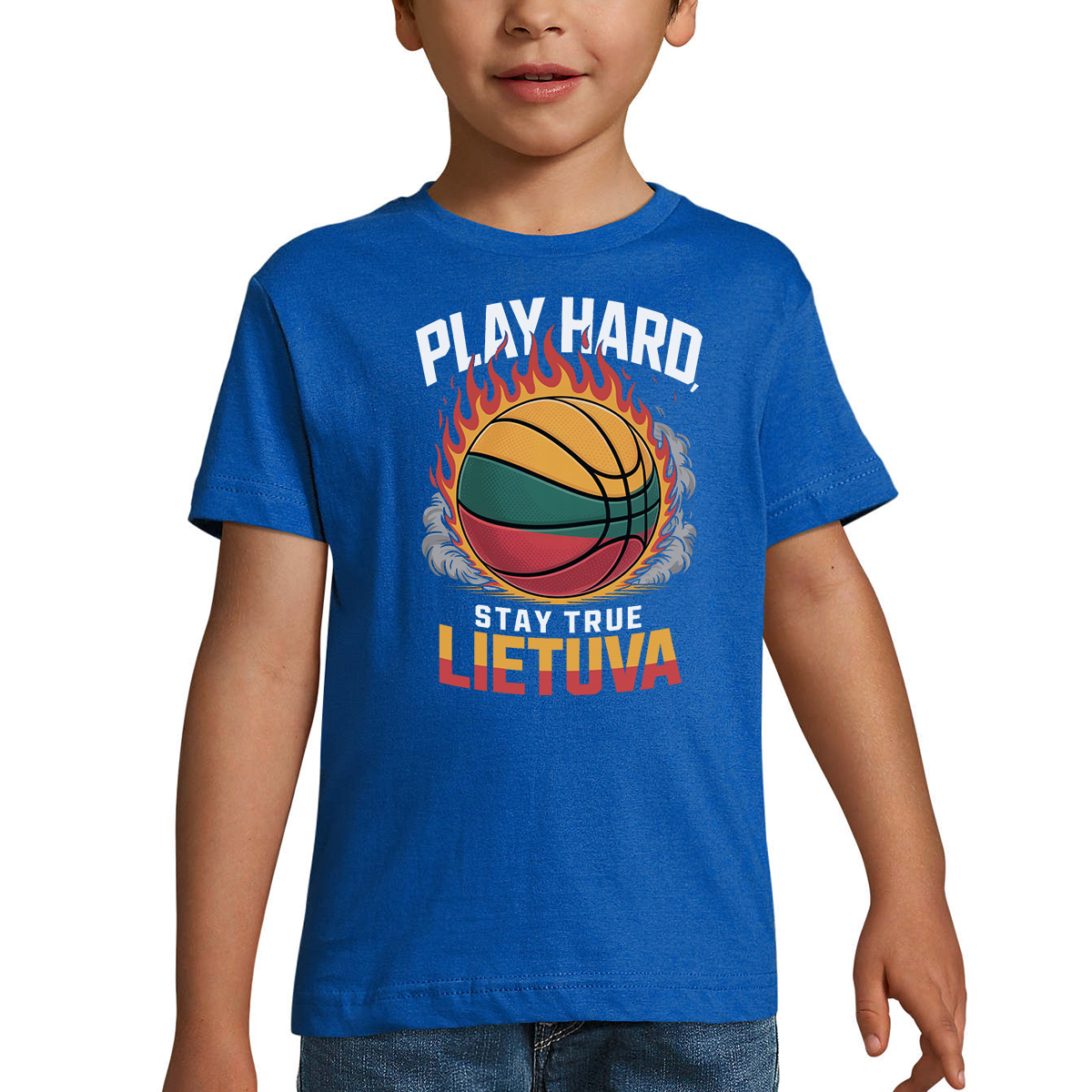 Vaikiški marškinėliai "Lietuva: play hard, stay true"