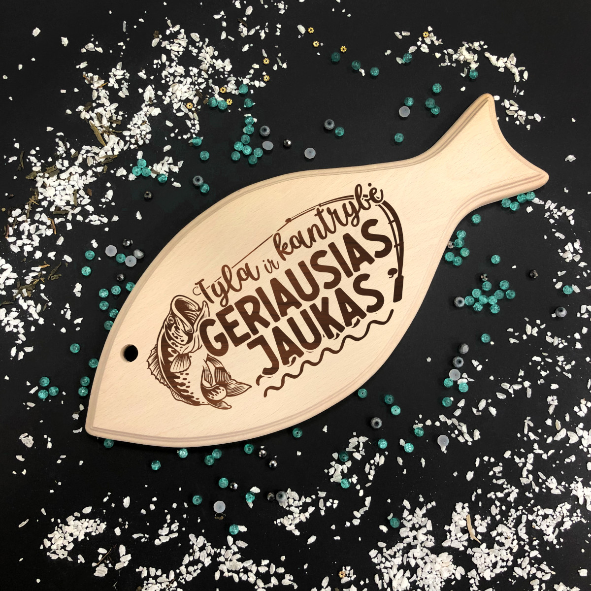 XL graviruota medinė žuvytės formos pjaustymo lentelė "Geriausias jaukas"