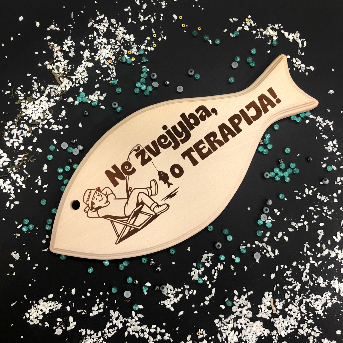 XL graviruota medinė žuvytės formos pjaustymo lentelė "Žvejyba-terapija"
